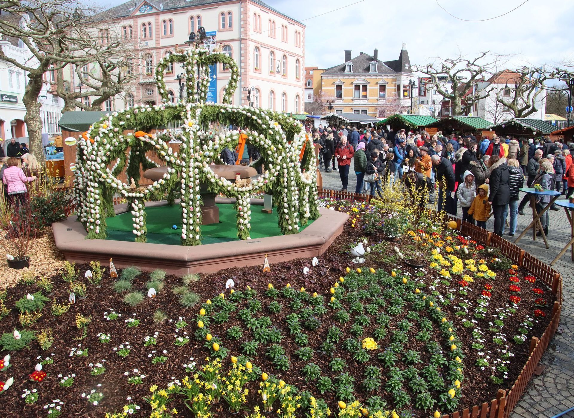 Im Herzen des Marktes thront die prächtige Osterkrone, geschmückt mit 2.000 handbemalten Eiern und umgeben von einem zauberhaften Frühlingsbeet – ein unvergleichlicher Blickfang. Rund 100 Stände präsentieren handgefertigte Unikate, originelle Osterdekorationen und regionale Spezialitäten – ideale Geschenke für das Osterfest. Auch die kulinarische Vielfalt des Marktes begeistert: Von herzhaften Speisen bis zu süßen Leckereien ist für jeden Geschmack etwas dabei.